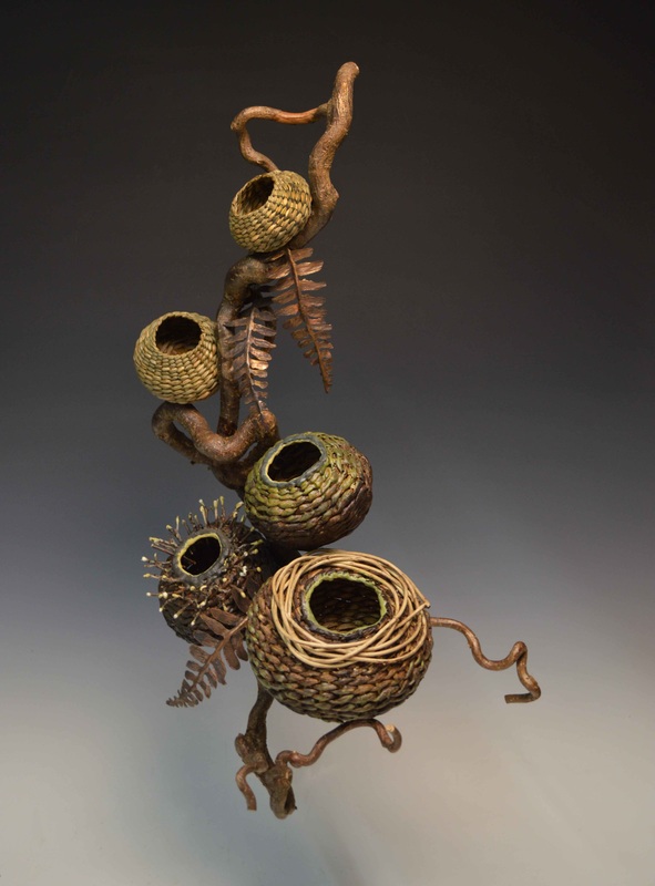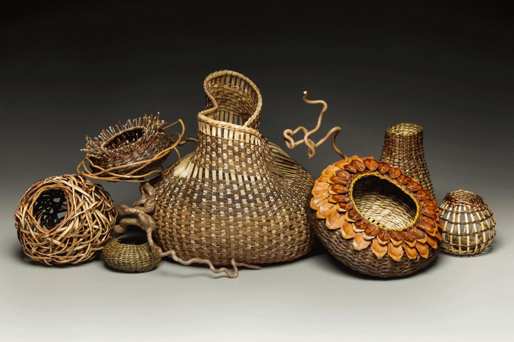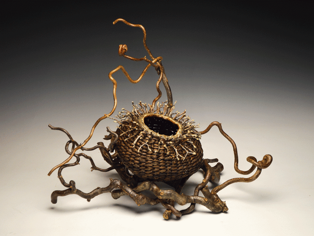 Matt crafts baskets primarily from tree bark and other innovative raw materials like vines and kudzu. The pieces he creates are not the predictable containers for household knick-knacks or potted plants. Matt’s baskets become exquisite and beautiful sculptures one might mount over the mantel.